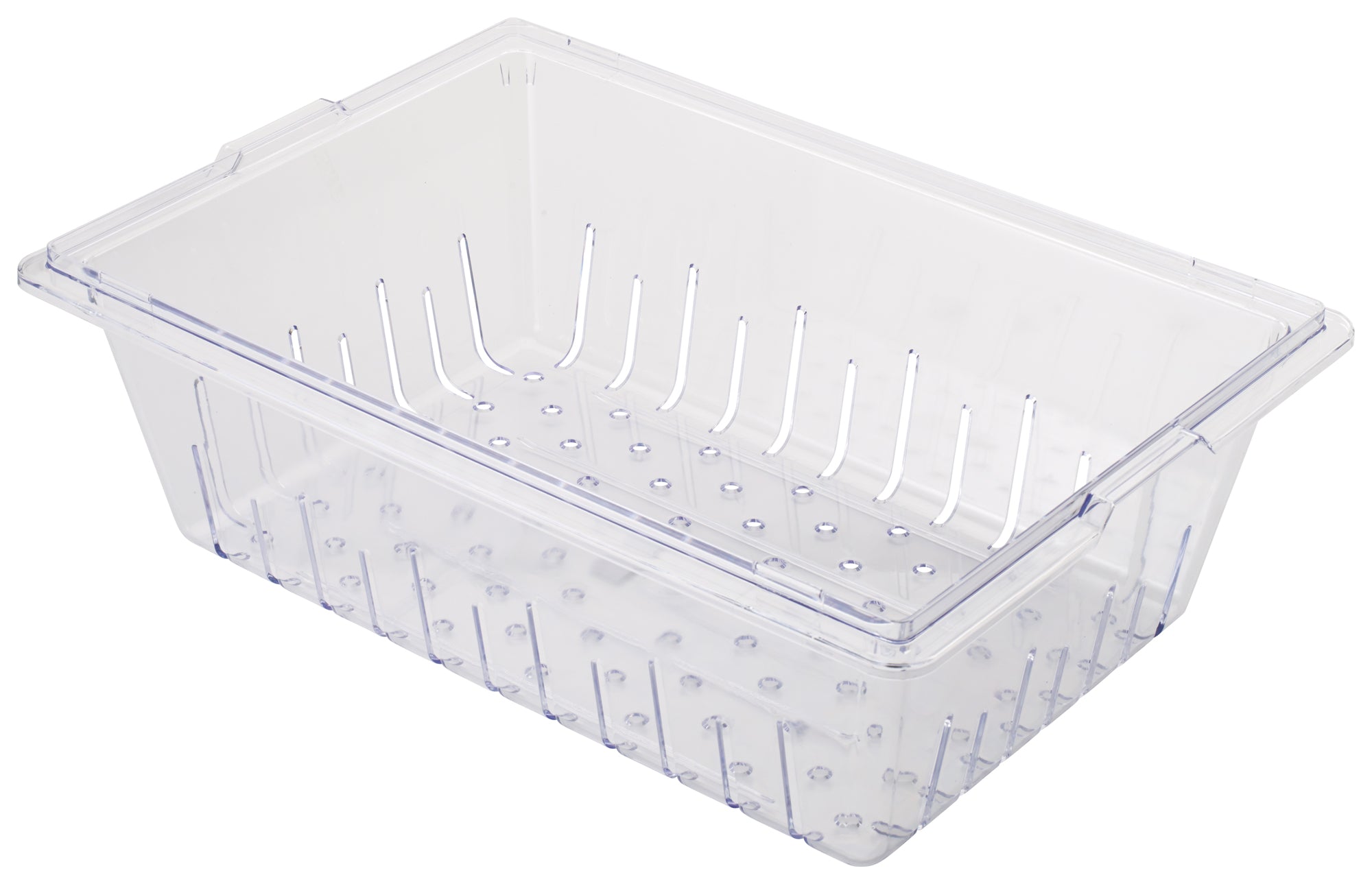 • Perforated design allows liquids to quickly separate from food items • Made of durable polycarbonate plastic that resists stains, odors, and scratches • Withstands temperatures from -40F to 212F (-40C to 100C) • NSF listed