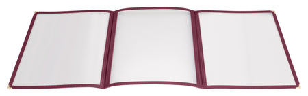 The Winco PMCT-9U Tri-Fold Triple Panel Menu Cover, 9-1/2" x 12-1/8" - Burgundy is built for commercial foodservice professionals who demand durability, performance, and ease of use. Whether you're outfitting a restaurant, hotel kitchen, bakery, or catering setup, this product is a practical and reliable choice for daily operations.
