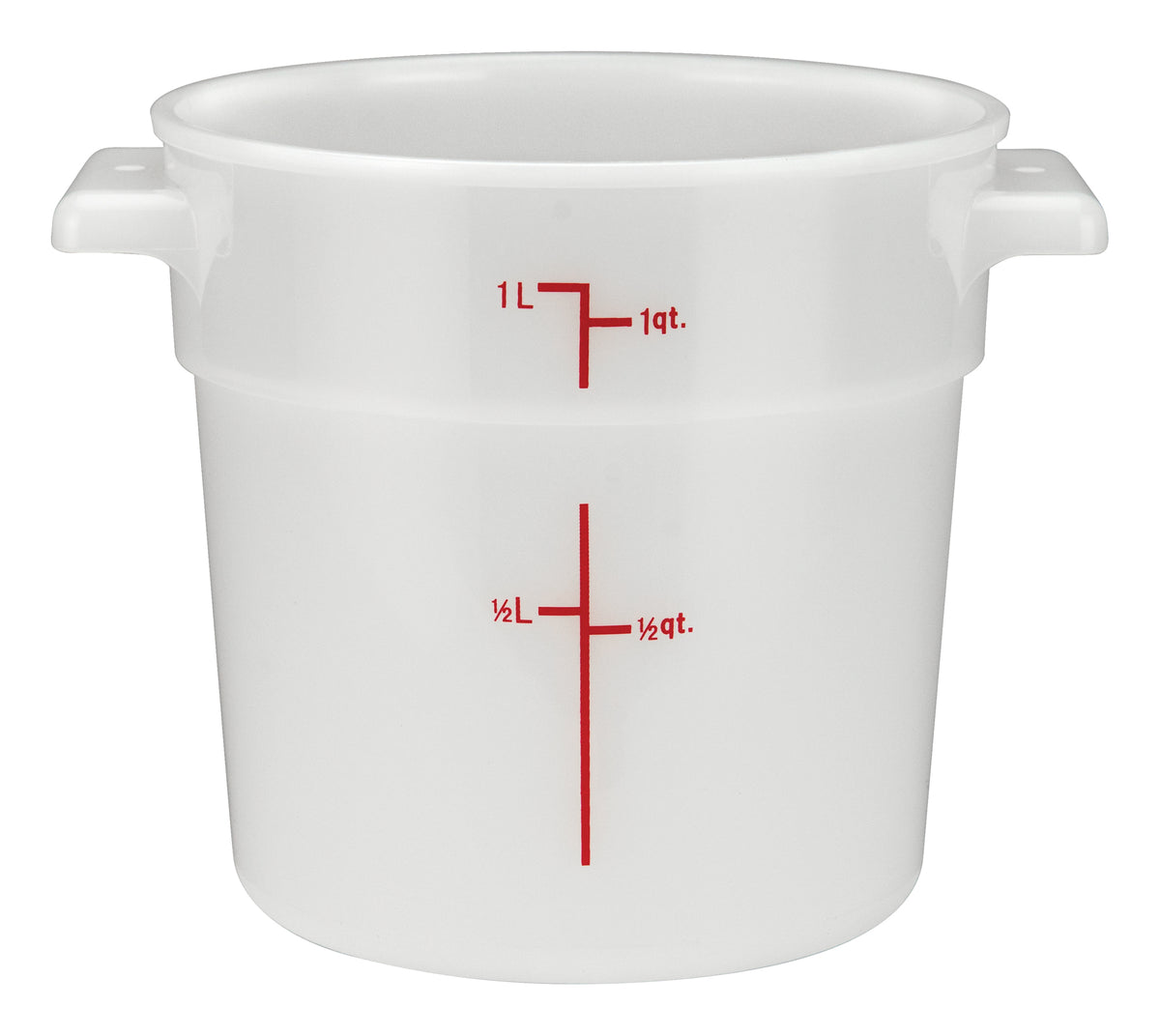 Winco PPRC-1W 1 Quart Round Storage Container with Built-in Handles Polypropylene White