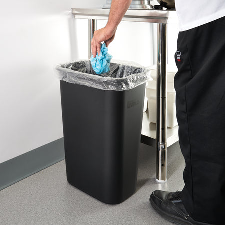 Winco PWR-41K 41 Quart Wastebasket Black LDPE Rectangular Rounded Edges