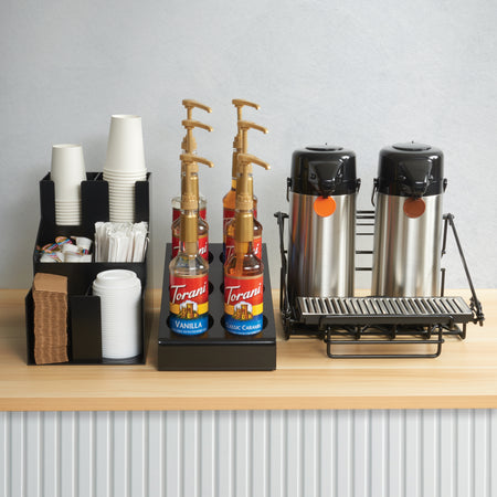 Winco SBO-6C Syrup/Condiment Bottle Organizer, 6-Compartments, 3.5"Dia, Plastic, Black