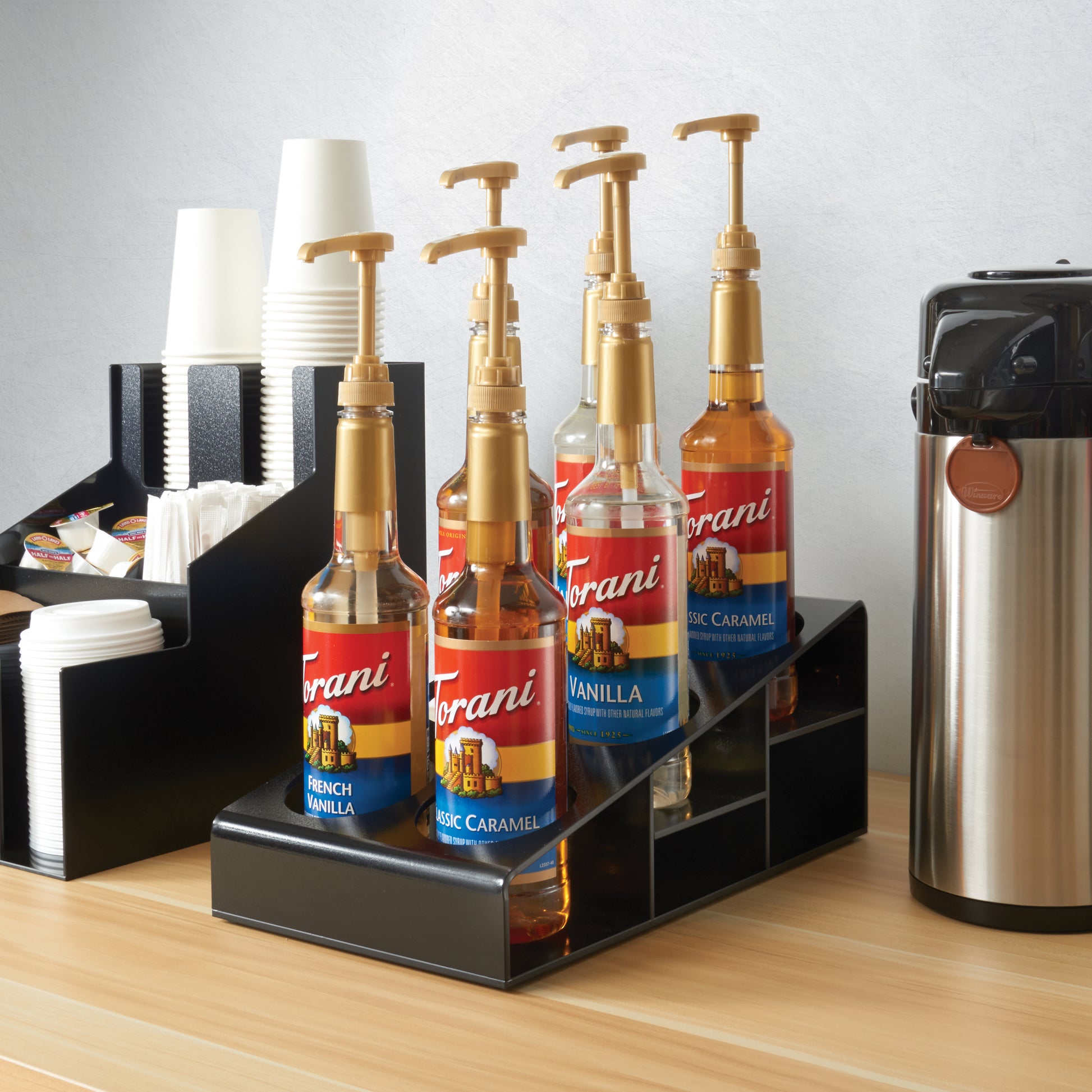 The Winco SBO-6C Syrup/Condiment Bottle Organizer, 6-Compartments, 3.5"Dia, Plastic, Black is built for commercial foodservice professionals who demand durability, performance, and ease of use. Whether you're outfitting a restaurant, hotel kitchen, bakery, or catering setup, this product is a practical and reliable choice for daily operations.