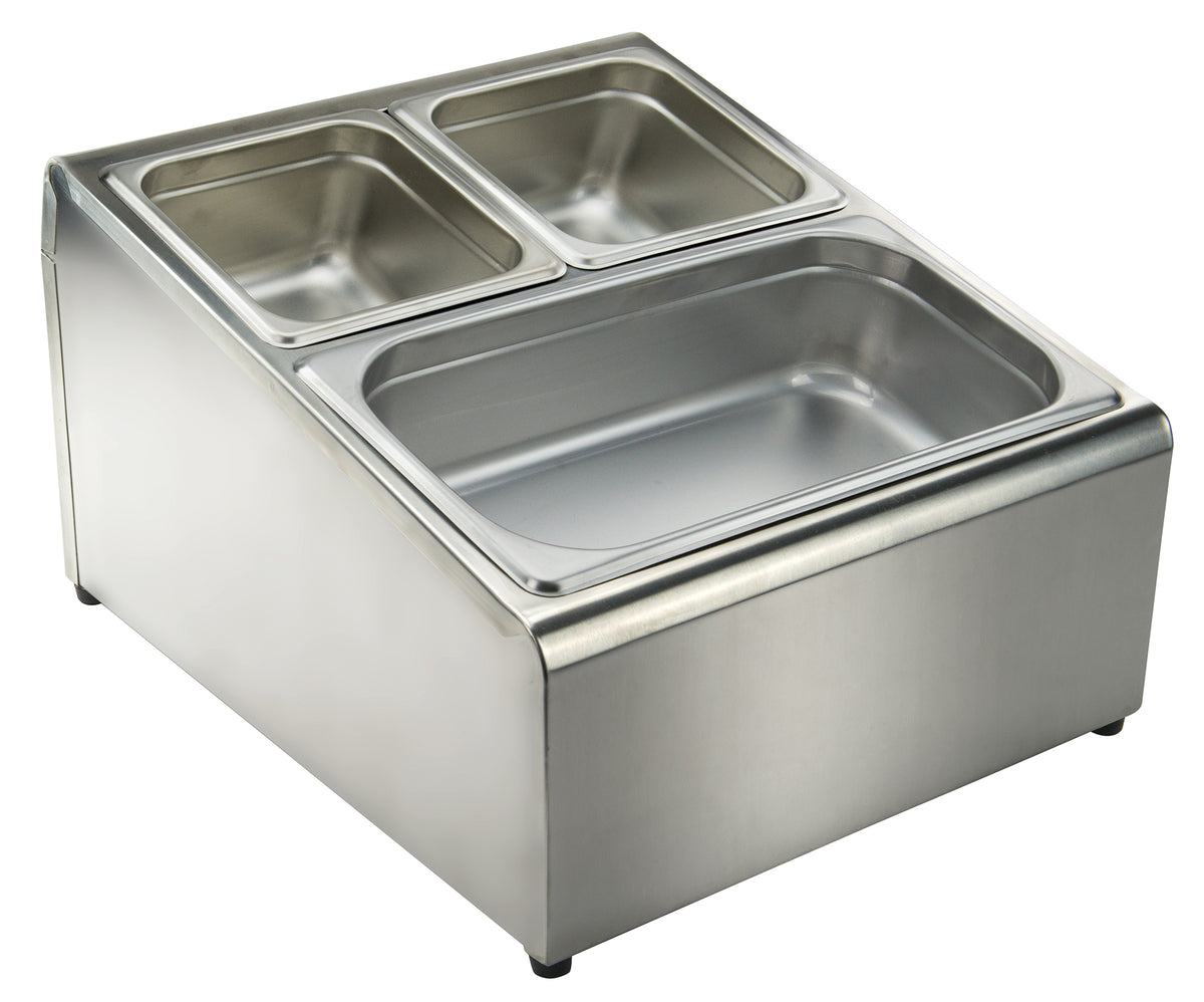 Winco SCPH-33 16 Inch Stainless Steel Condiment Organizer Bin with 2 Sections