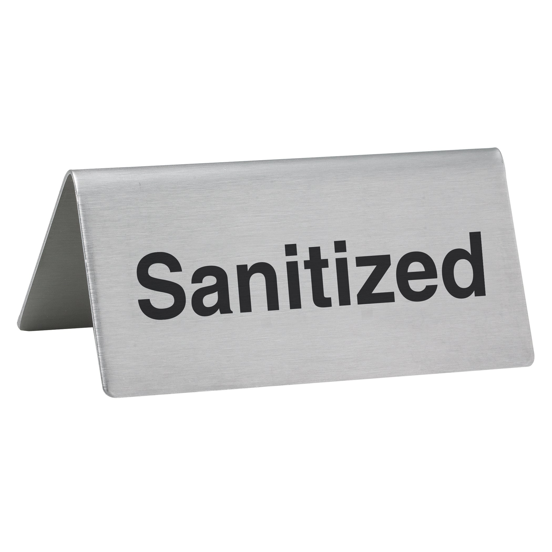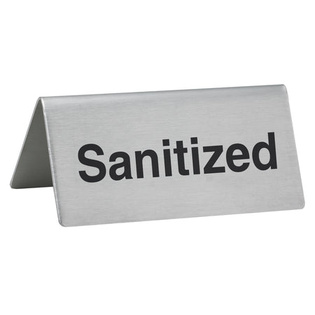 Winco SGN-106 3 Inch Sanitized Tabletop Tent Sign Stainless Steel