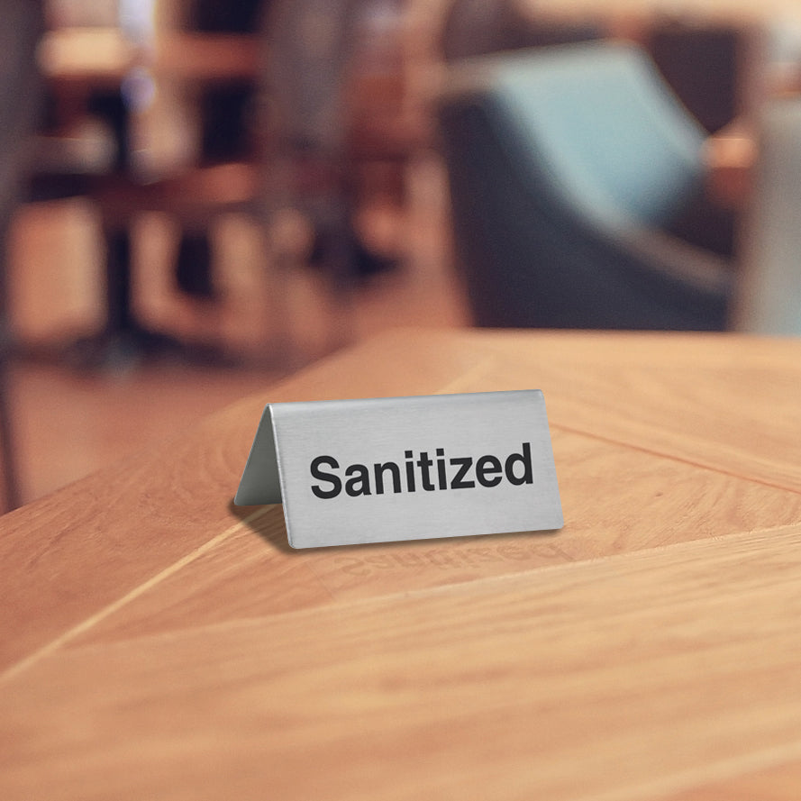 Ensure you're clearly communicating your establishment's cleanliness with this Sanitized tent sign.