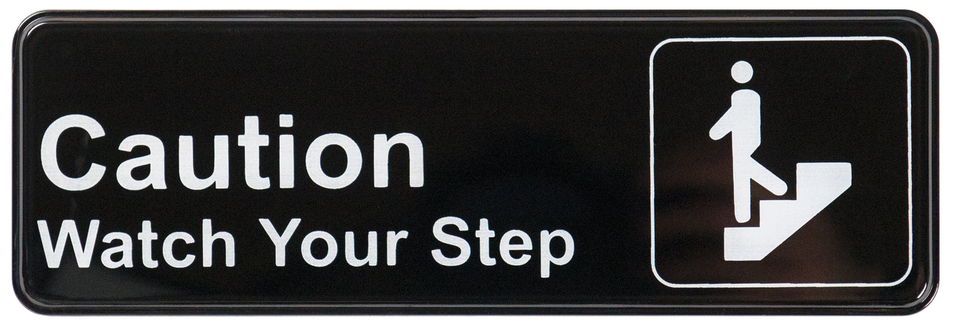 Winco SGN-326 9 Inch Caution/Watch Your Step Sign with Symbol Black and White
