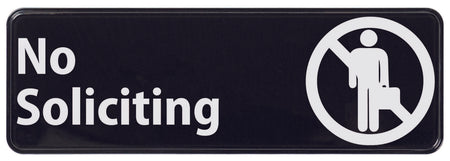 Winco SGN-336 9 Inch Information Sign No Soliciting Black with White Imprint