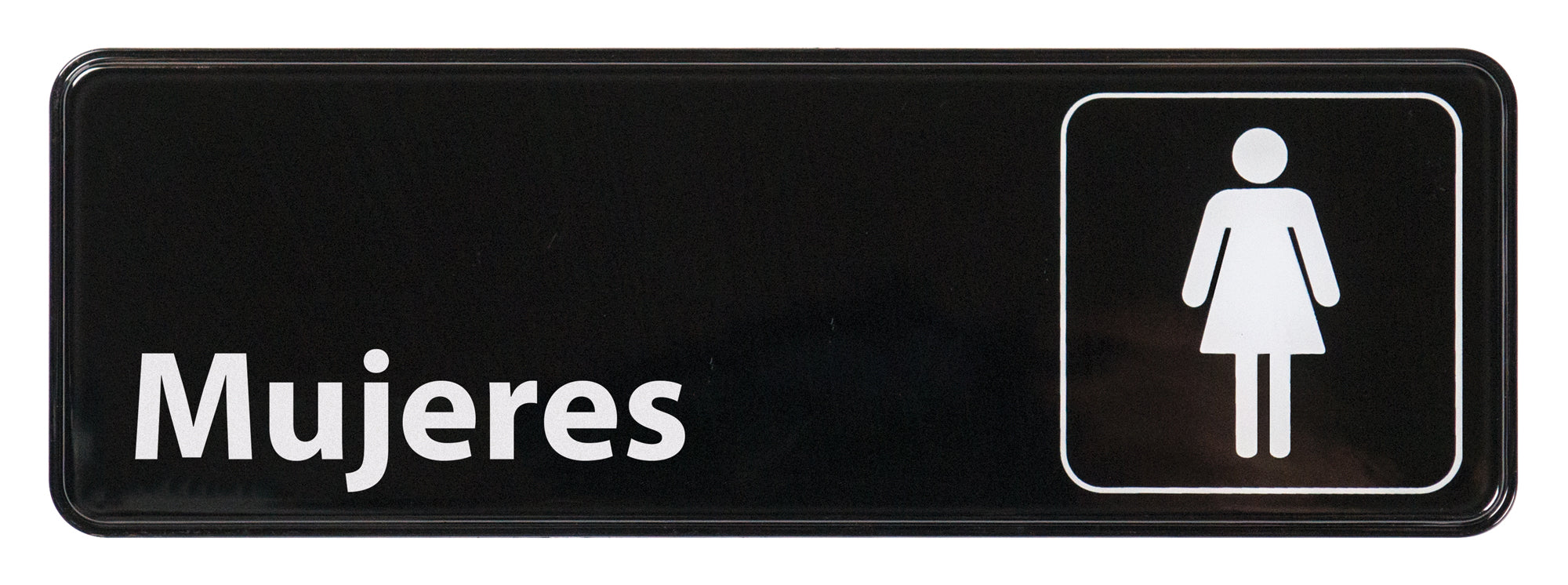 The Winco SGN-369 Information Signs, 9"W x 3"H, Spanish - SGN-369 - Women is built for commercial foodservice professionals who demand durability, performance, and ease of use. Whether you're outfitting a restaurant, hotel kitchen, bakery, or catering setup, this product is a practical and reliable choice for daily operations.