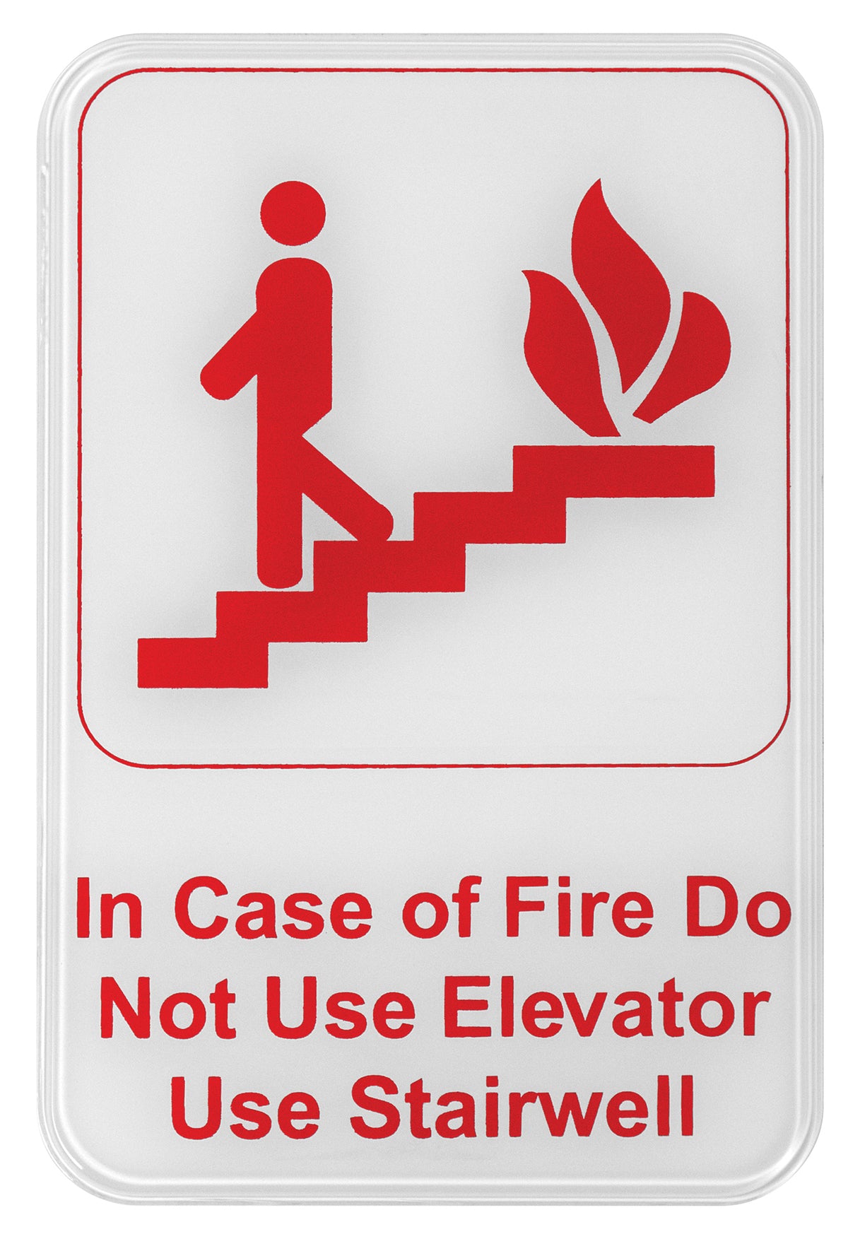 Winco SGN-683W 6 Inch Fire Safety Sign with Symbol Red Imprint on White