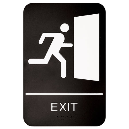 Winco SGNB-604 6 Inch Compliance Sign With Symbol Braille EXIT Black