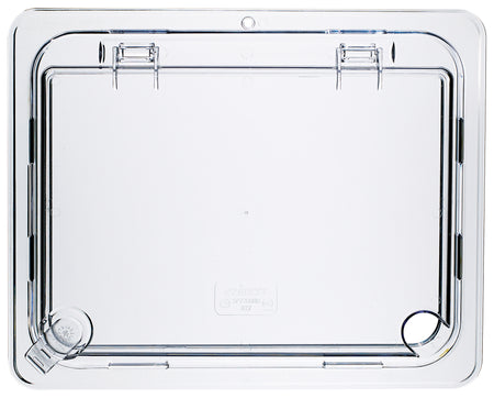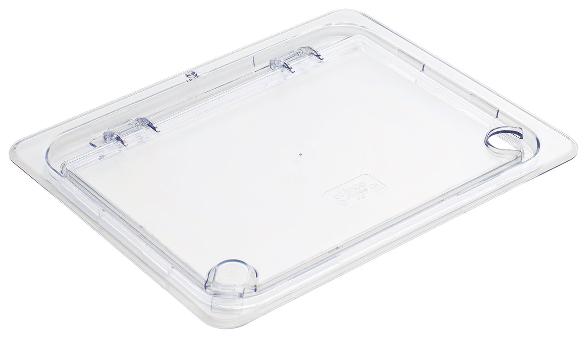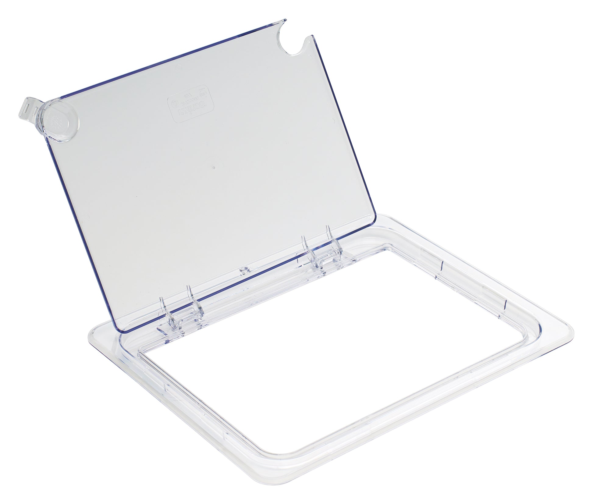 Safely store food, with this polycarbonate hinged lid. Featuring a built-in spoon notch, this lid enables your staff to keep spoons inside the pan during times of storage, further minimizing the risk of cross-contamination