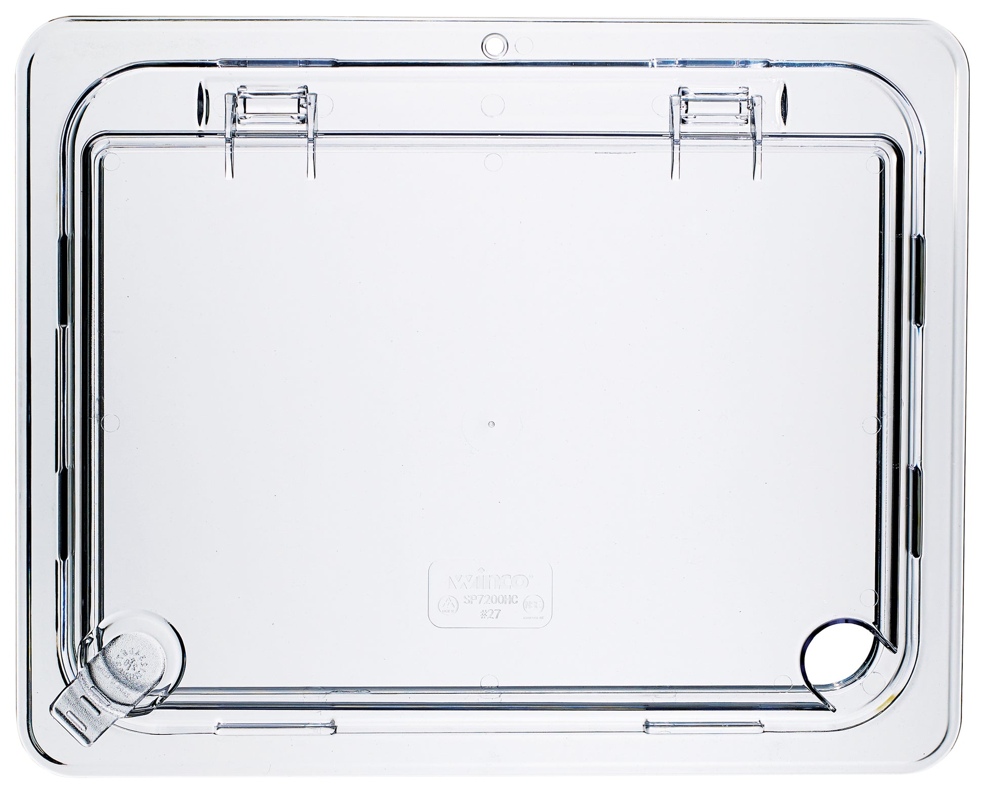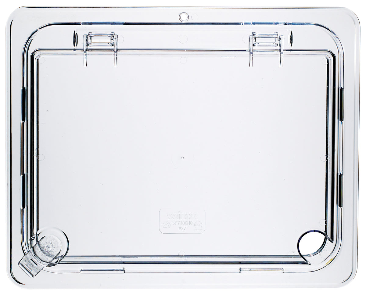 Winco SP7200H 1/2 Size Food Pan Cover Hinged Notched Polycarbonate Clear