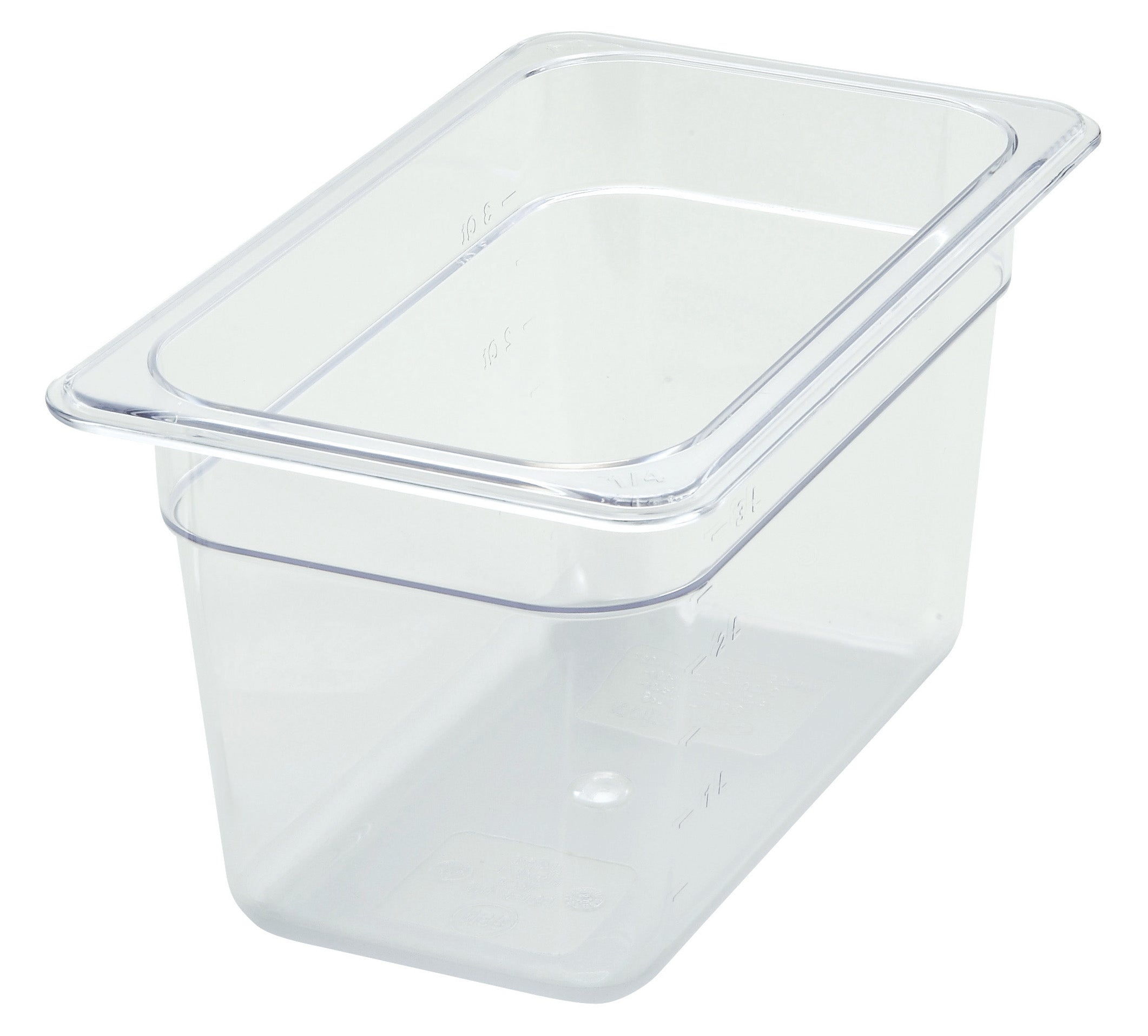 Winco SP7406 10 Inch Clear Polycarbonate Food Pan 1/4 Size with Dishwasher Safe