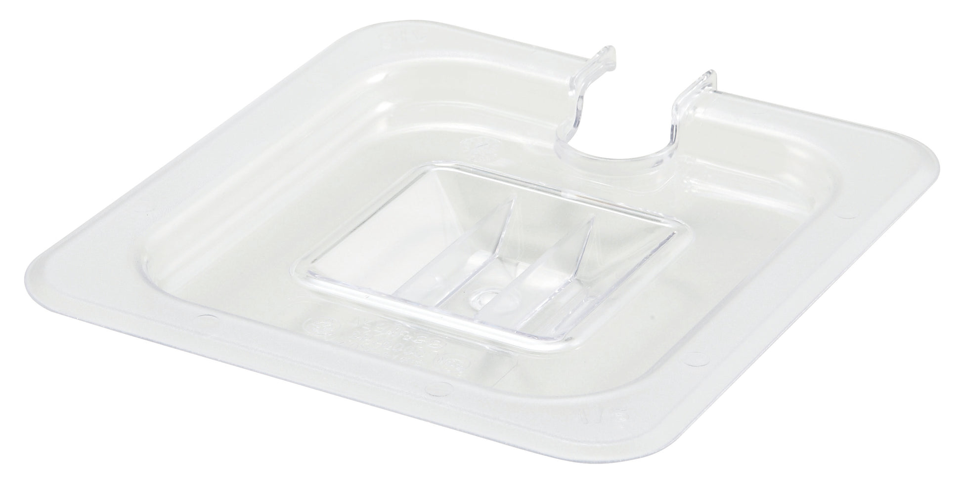 Winco SP7600C 1/6 Size Slotted Food Pan Cover with Handle Polycarbonate Clear