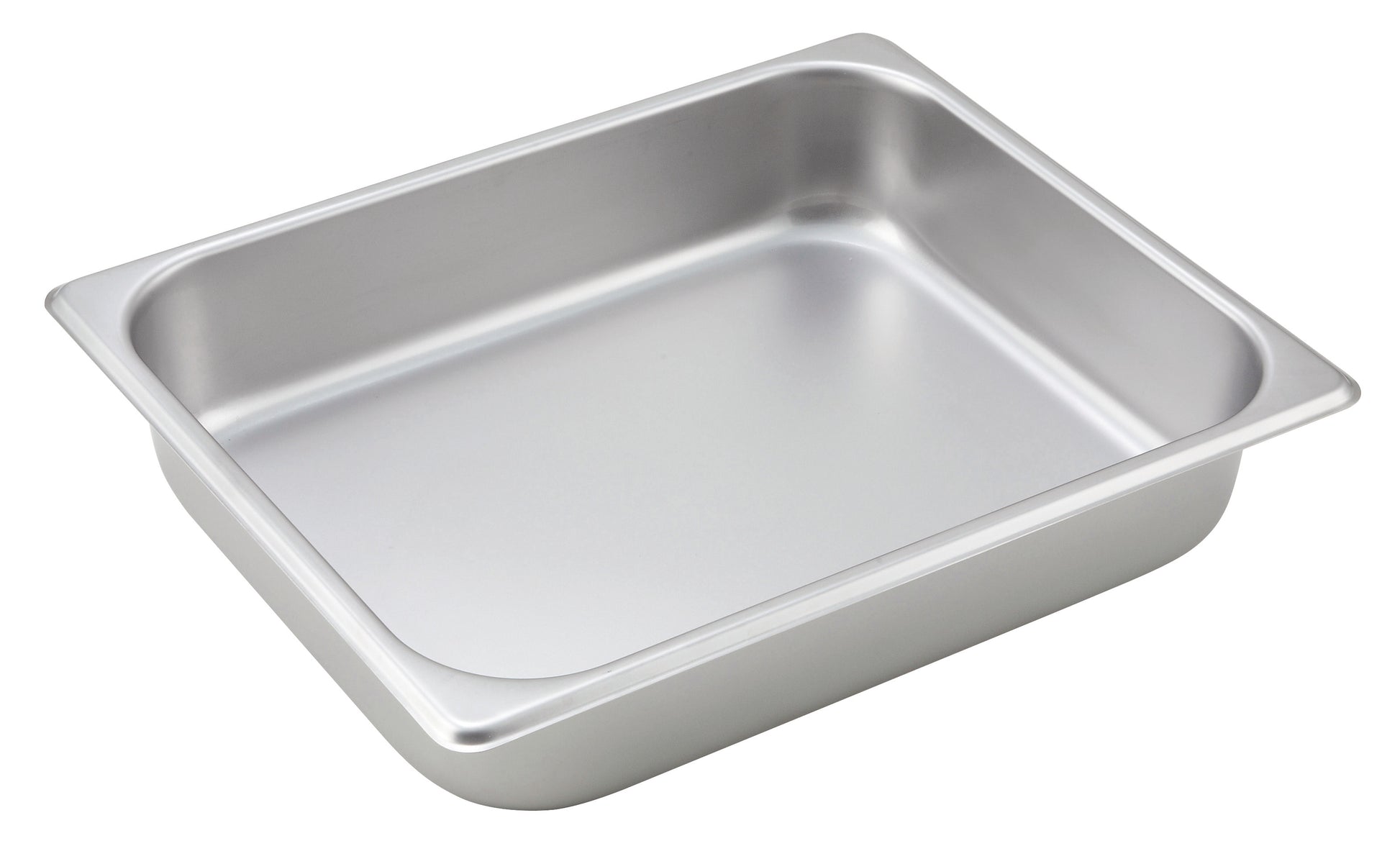 • This Winco SPH2 is a 1/2 size straight sided steam table / hotel pan ideal for use in buffets, restaurants and catered events. This 2.5” deep food pan features straight sides and rounded corners. Made from 25-gauge 18/8 grade stainless-steel, these food pans are designed to withstand daily use in a foodservice environment. The reinforced corners ensure this pan can go from freezer to oven without warping. The rounded corners ensure food won’t stick for quick and easy clean up. Dishwasher safe. NSF certified.