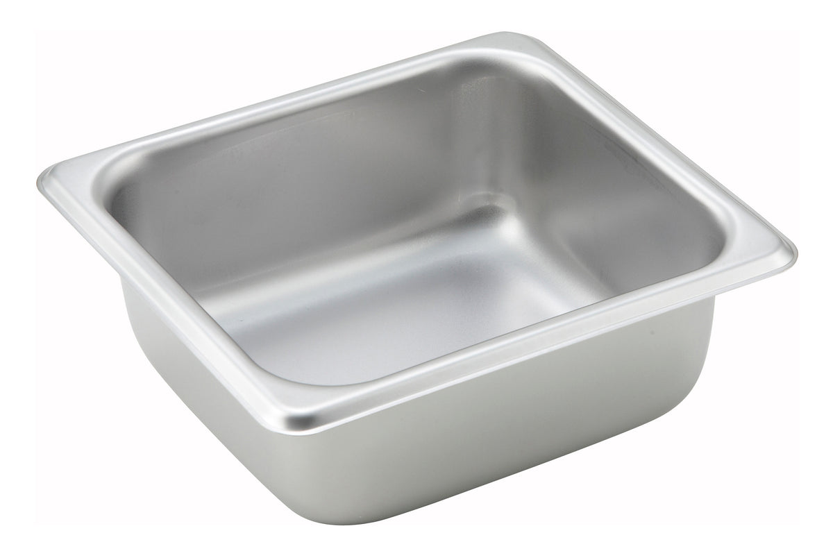• This Winco SPS2 is a 1/6 size straight sided steam table / hotel pan ideal for use in buffets, restaurants and catered events. This 2.5” deep food pan features straight sides and rounded corners. Made from 25-gauge 18/8 grade stainless-steel, these food pans are designed to withstand daily use in a foodservice environment. The rounded corners ensure food won’t stick for quick and easy clean up. Dishwasher safe. NSF certified.