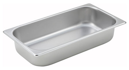 • This Winco SPT2 is a 1/3 size straight-sided steam table / hotel pan ideal for use in buffets, restaurants and catered events. This 2.5” deep food pan features straight sides and rounded corners. Made from 25-gauge 18/8 grade stainless-steel, these food pans are designed to withstand daily use in a foodservice environment. The rounded corners ensure food won’t stick for quick and easy clean up. Dishwasher safe. NSF certified.