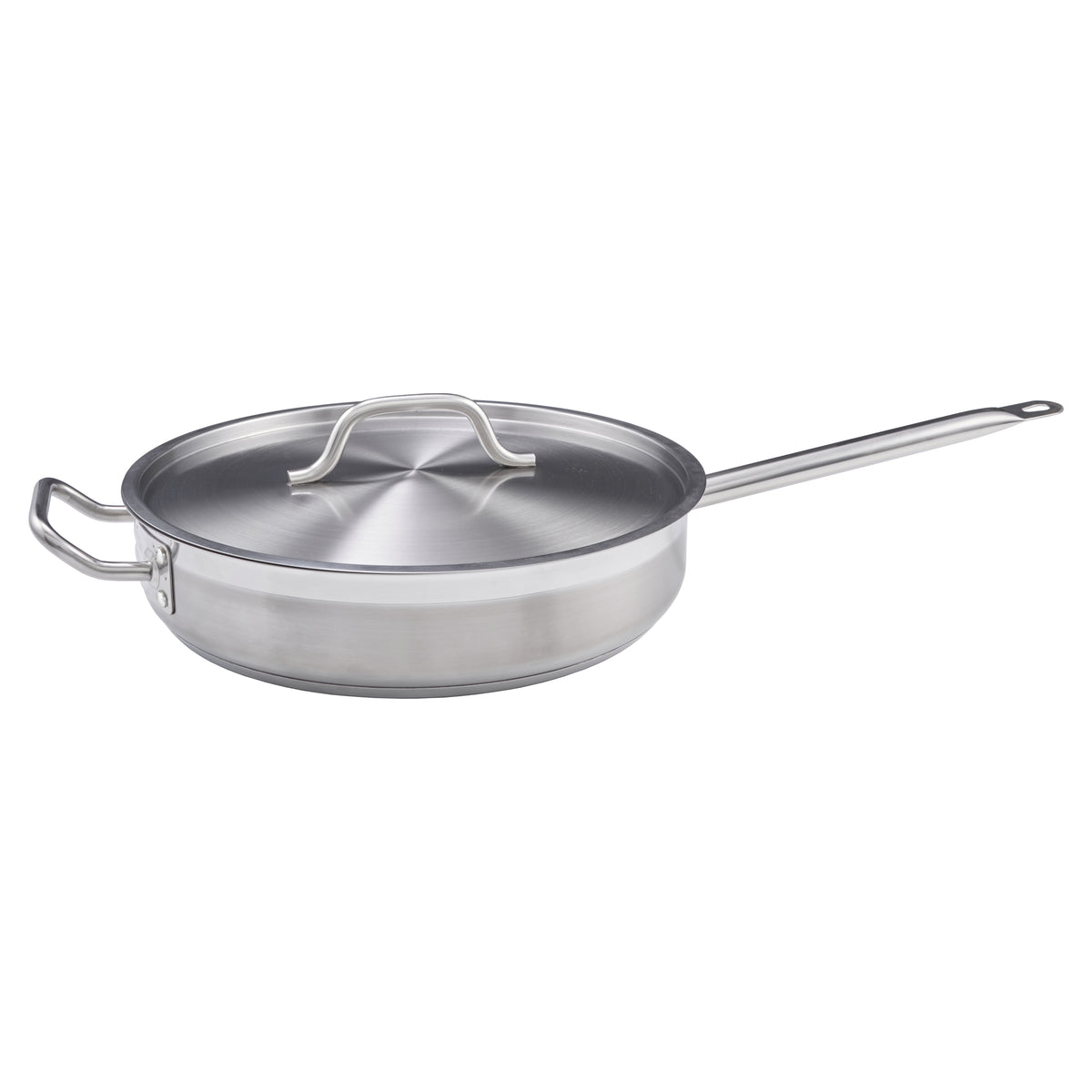Winco SSET-5 5 Quart Induction Sauté Pan with Cover Riveted Handle