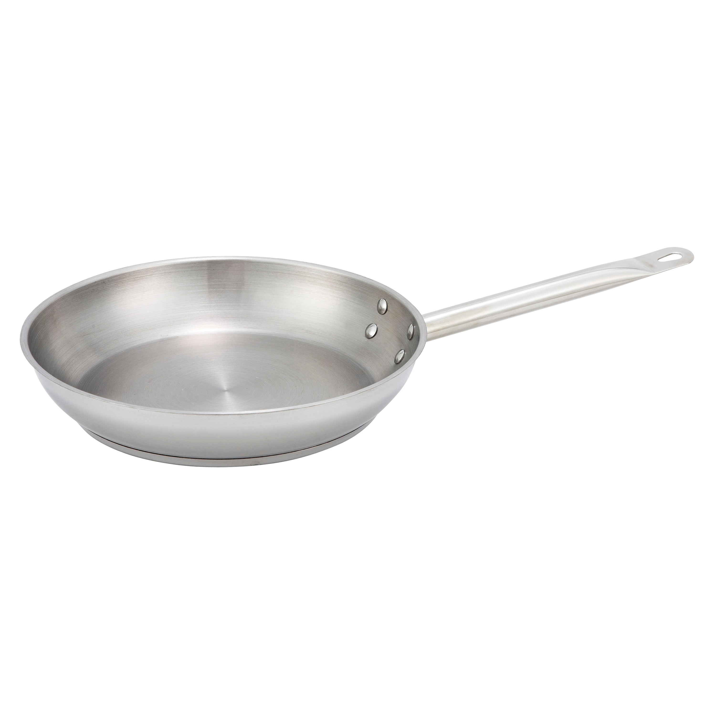 Winco SSFP-9 9-1/2 Inch Fry Pan Tri-Ply Aluminum Core Riveted Handle Stainless Steel