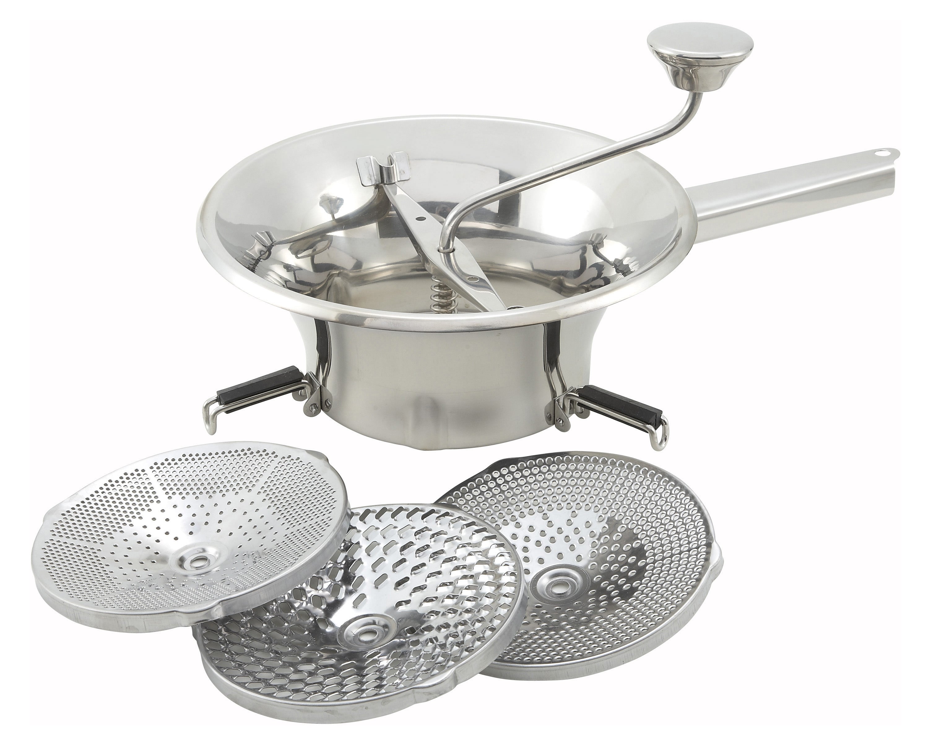 Winco SVM-9 9 Inch Diameter Food Mill 2 Quarts Manual with Interchangeable Plates Stainless Steel