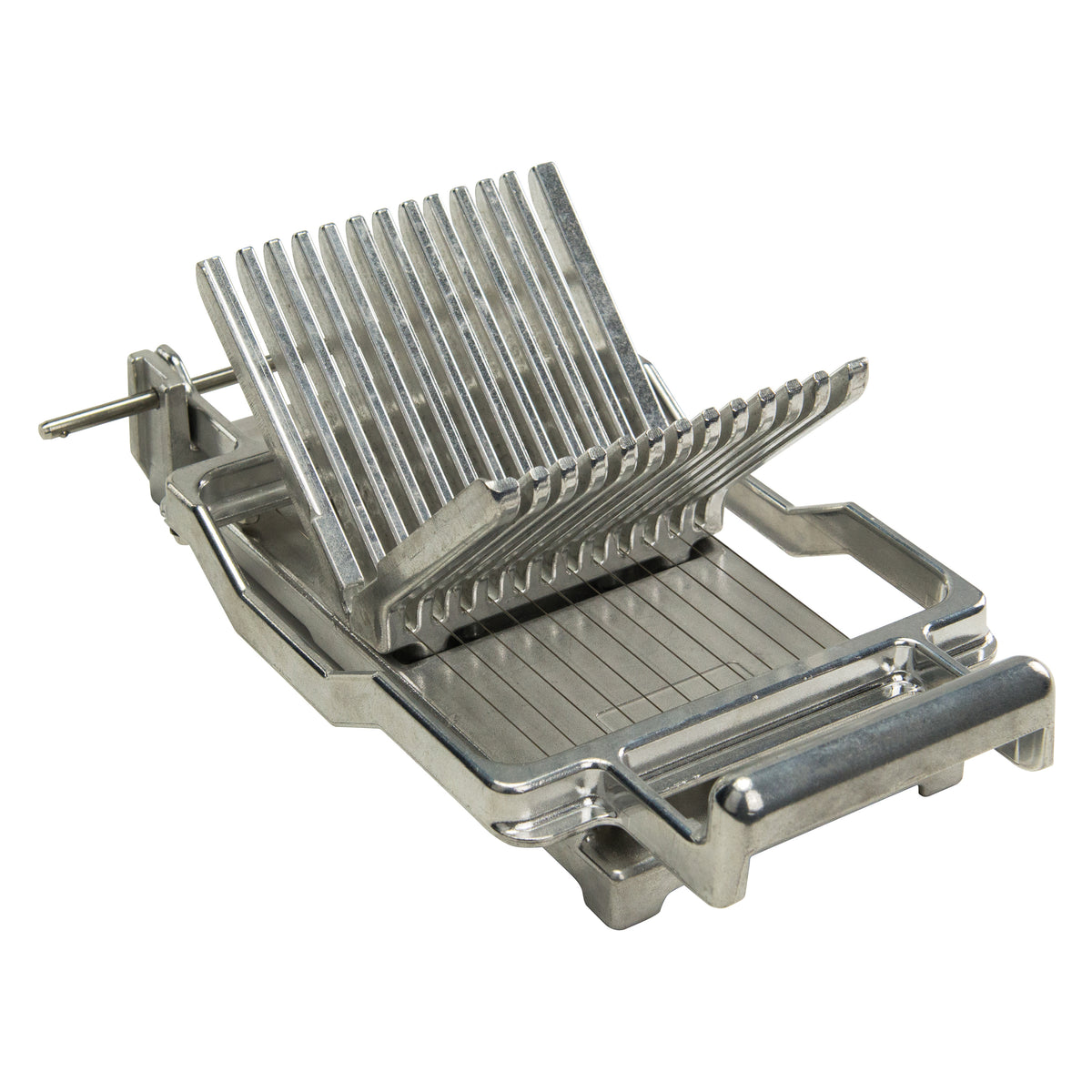 • Cast aluminum construction with stainless steel wires • Cutting area accommodates 1/3 of a 5 lb cheese block • Cut 3/8 or 3/4 cheese sticks, cubes or slices • Cleaning brush included • NSF listed