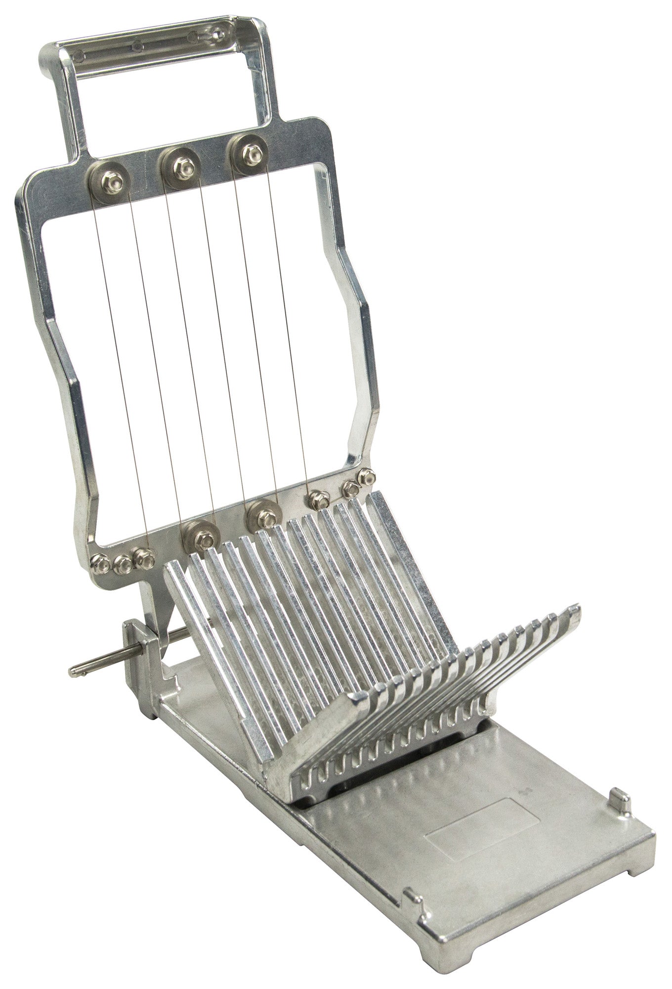 • Cast aluminum construction with stainless steel wires • Cutting area accommodates 1/3 of a 5 lb cheese block • Cut 3/8 or 3/4 cheese sticks, cubes or slices • Cleaning brush included • NSF listed