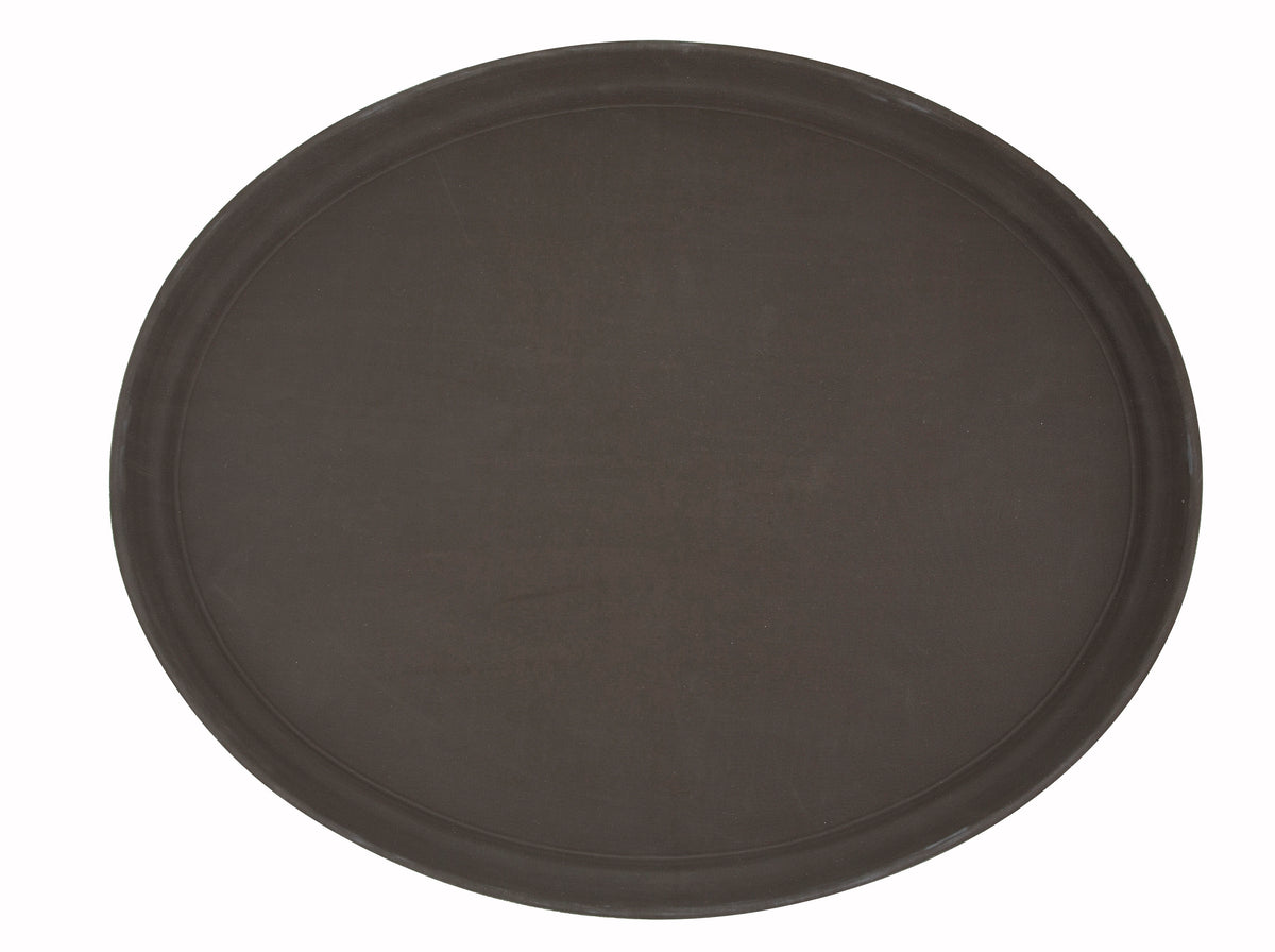 Winco TRH-2722 22 Inch Plastic Oval Easy-Hold Tray Brown Rubber Lined