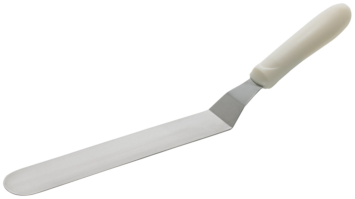 Winco TWPO-9 8-1/2 Inch Stainless Steel Offset Spatula Dishwasher Safe White Handle