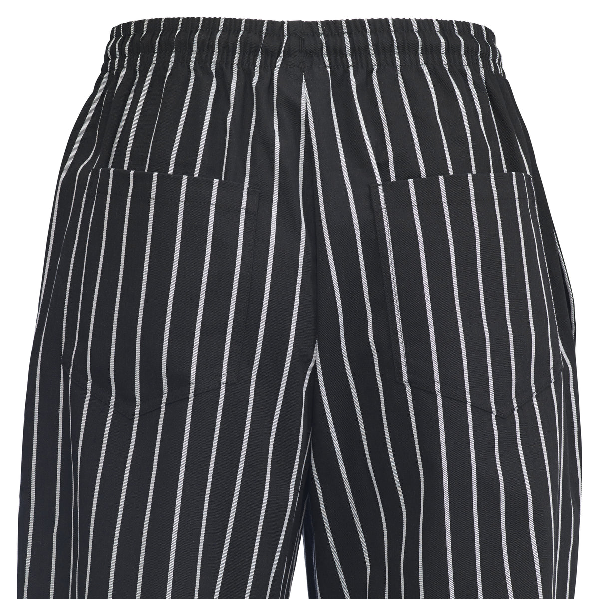 • Keep your kitchen staff cool with the UNF-3CL unisex chef’s pants from Winco. These pull-on style pants feature an elastic waist and drawstring for secure fastening. The lightweight 65/35 poly-cotton blend ensures maximum breathability ideal for chefs and line cooks in hot hotel and restaurant kitchens. The chalkstripe pants offer ample storage with on-seam and back pockets. The traditional styling of these pants adds an upscale flare that elevates any dining experience. Machine washable.