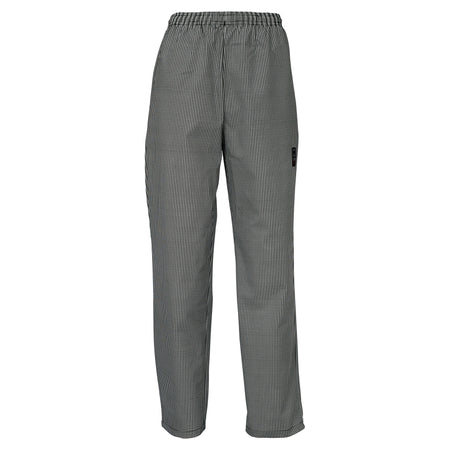 • Keep your kitchen staff cool with the UNF-4KS unisex chef’s pants from Winco. These pull-on style pants feature an elastic waist and drawstring for secure fastening. The lightweight 65/35 poly-cotton blend ensures maximum breathability ideal for chefs and line cooks in hot hotel and restaurant kitchens. The houndstooth pants offer ample storage with on-seam and back pockets. The traditional styling of these pants adds an upscale flare that elevates any dining experience. Machine washable.