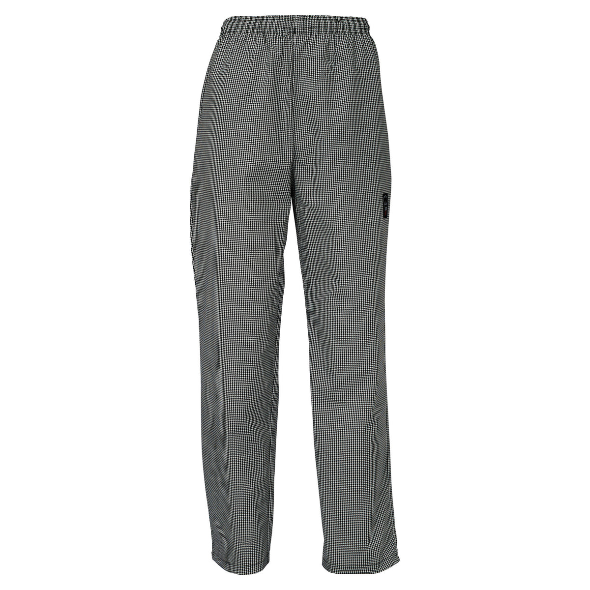 • Keep your kitchen staff cool with the UNF-4KXL unisex chef’s pants from Winco. These pull-on style pants feature an elastic waist and drawstring for secure fastening. The lightweight 65/35 poly-cotton blend ensures maximum breathability ideal for chefs and line cooks in hot hotel and restaurant kitchens. The houndstooth pants offer ample storage with on-seam and back pockets. The traditional styling of these pants adds an upscale flare that elevates any dining experience. Machine washable.