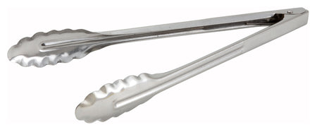 Winco UT-12LT 12 Inch Utility Tongs Coiled Spring Medium Weight Stainless Steel with Scalloped Edge