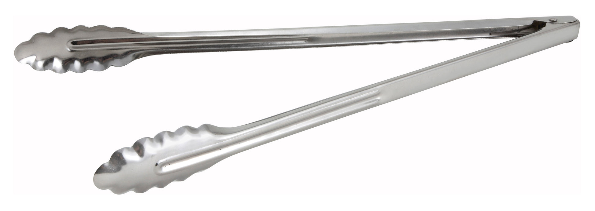 Winco UT-16LT 16-Inch Utility Tongs Coiled Spring Scalloped Edge Stainless Steel