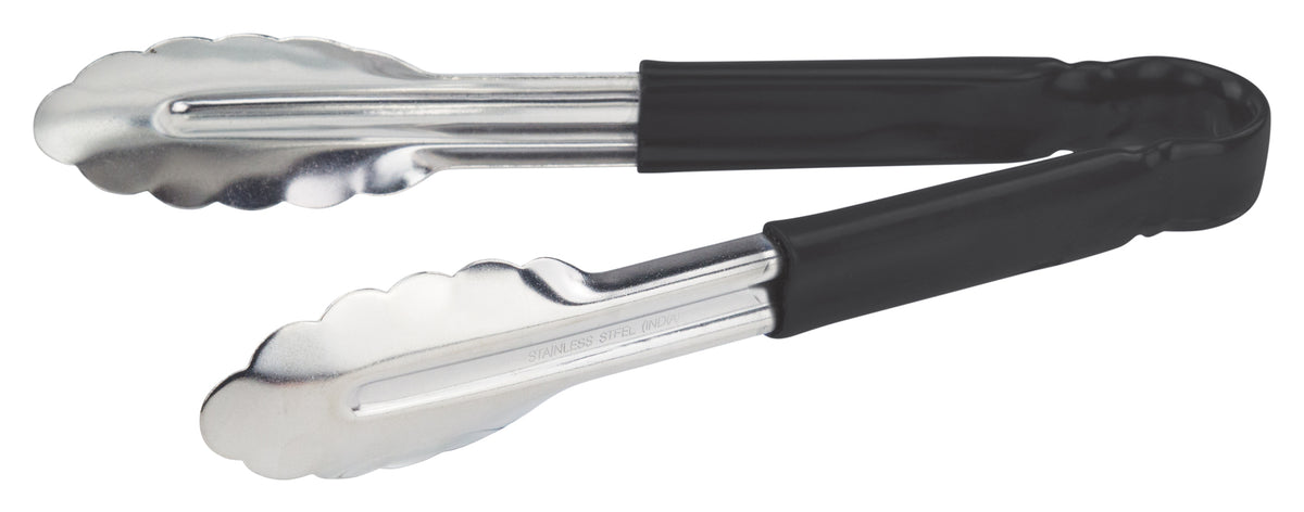 Winco UT-9HP-K 9 Inch Utility Tongs for Cold Food Service Black Plastic Handle Stainless Steel