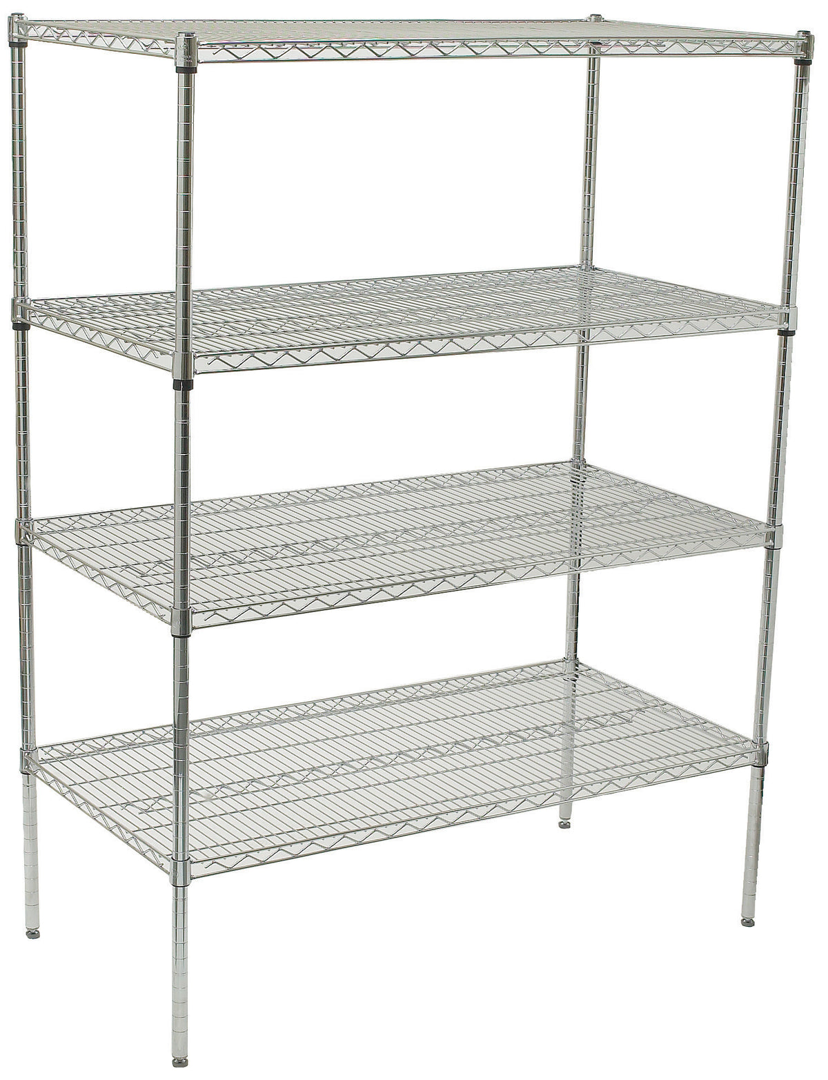 • Includes (4) 18” x 48” shelves and (4) 72” high posts