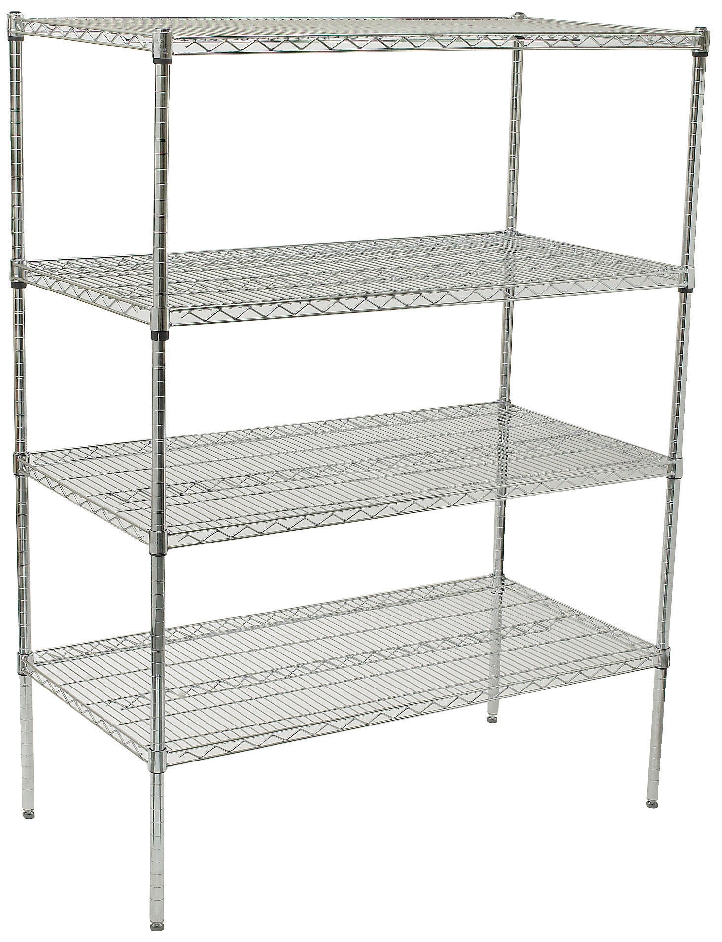 • Includes (4) 24” x 48” shelves and (4) 72” high posts