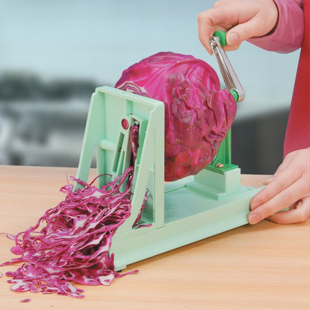 • Produce beautiful vegetable strands and curly ribbons in minutes with a turn of the handle