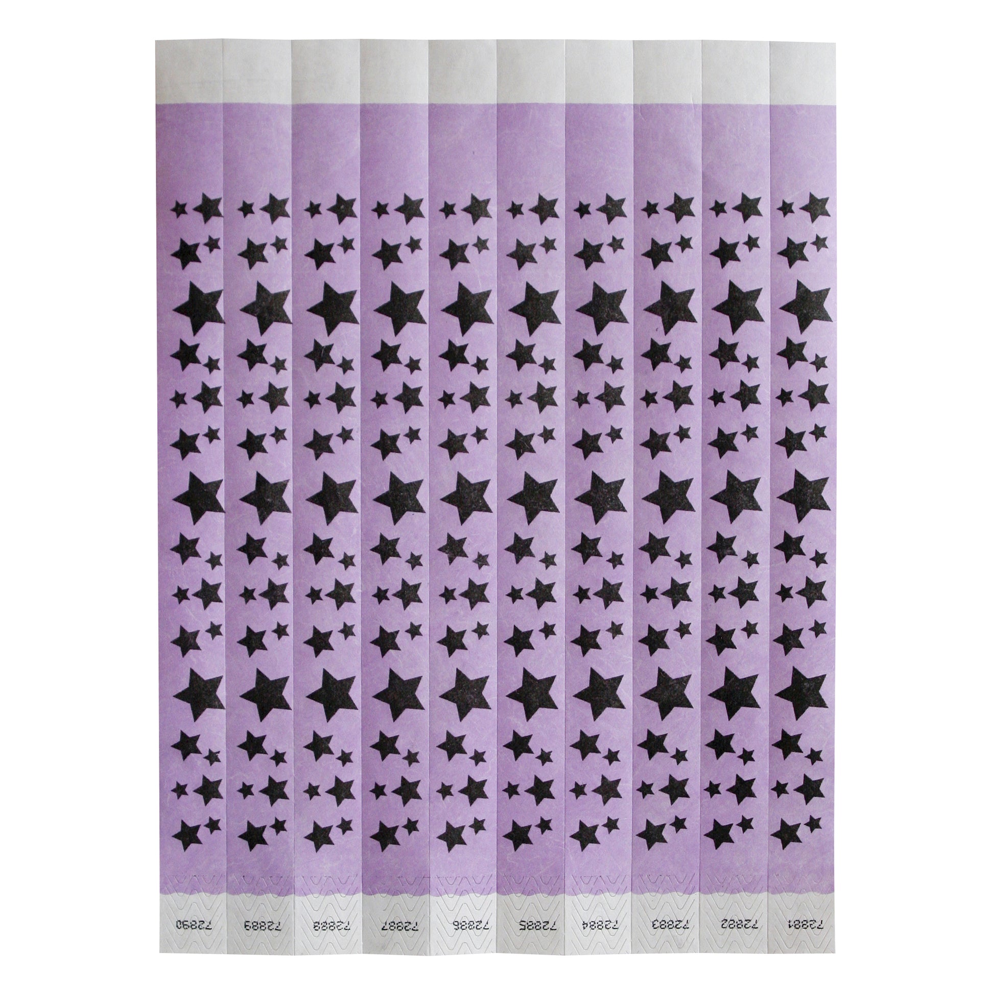 Winco WB-STARS Bar Maid Waterproof Tear-Free Wristbands - Stars (Purple/Black) (500 Pieces/Pack)