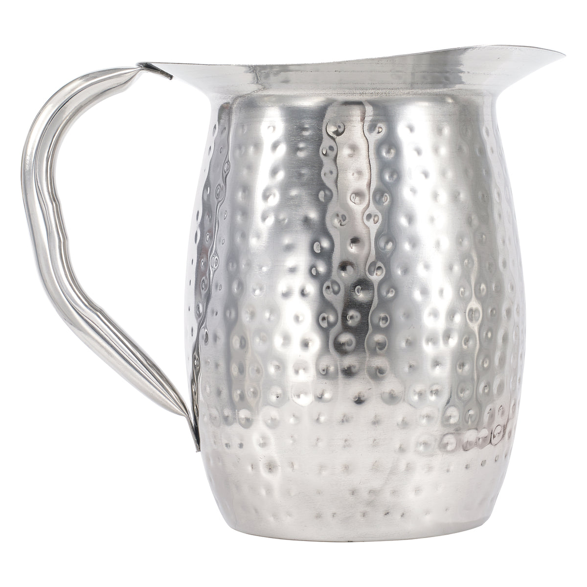Engineered for foodservice professionals, the Winco WPB-2H Bell Pitcher balances visual appeal with functional excellence. The hammered surface not only elevates its aesthetic but also enhances grip security during service. Its heavy weight stainless steel construction resists dents, stains, and corrosion, ensuring dependable performance through countless beverage refills. From water service to iced tea and juice, this 2-quart pitcher is a restaurant essential.