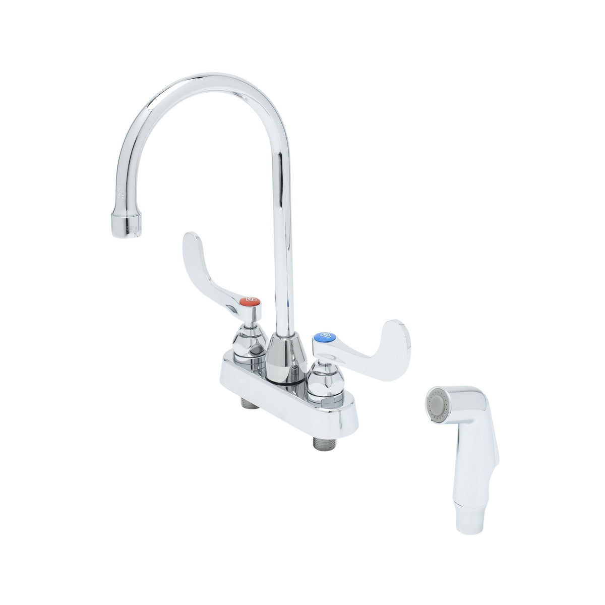 Workboard Faucet, Deck Mount, 4" Centers, Gooseneck, Diverter, Side Spray, Wrist Handles