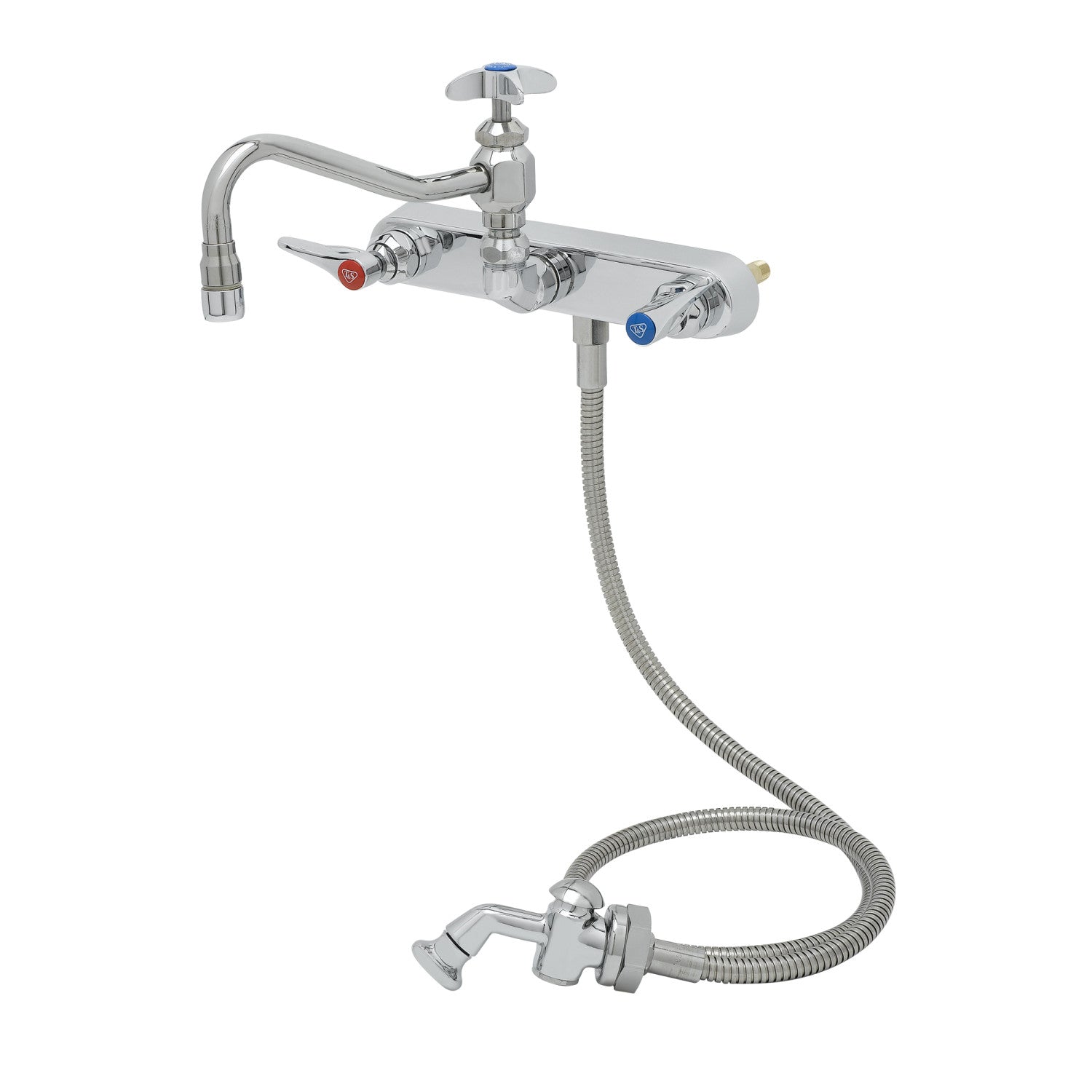 Workboard Faucet, Wall Mount, 8" Centers, 8" Swing Nozzle w/Diverter, Hose, Spray Valve